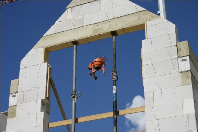 Nun werden doch die Verblendsteine angeliefert und mit den Arbeiten wurde begonnen -- sogar Samstags wird gearbeitet! Wir freuen uns -- aber was ist mit den zwei Wochen "Leerlauf"....? |