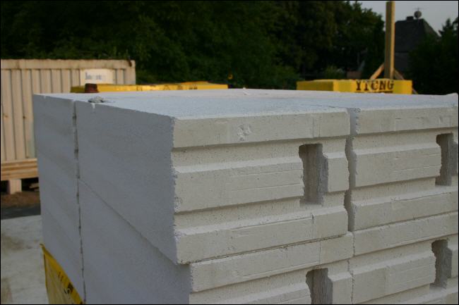 Heute wurde ein erstes Holzgerüst erstellt und die Porenbeton-Steine angeliefert. Morgen sollte es also wirklich ans Mauern gehen...