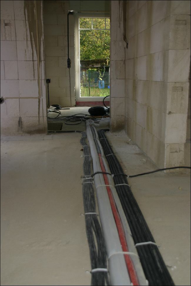 Die Elektroarbeiten gehen zügig voran. Morgen müssen die Arbeiten beendet werden, denn der Verputzer steht bereits vor der Tür. Jetzt geht es Schlag auf Schlag! Das Haus gleicht derweil immer mehr einem Umspannwerk... |