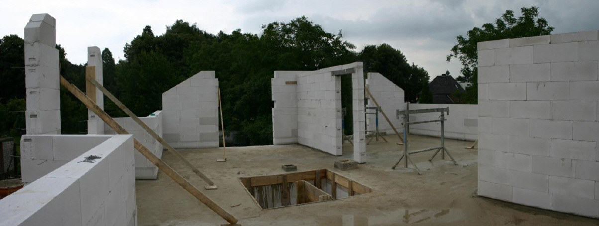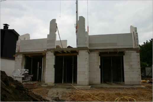 Nachdem wir jetzt eine Weile terminbedingt die Baustelle nicht besuchen konnten, gibt es viel Neues zu sehen: die Erdgeschoss-Decke ist gegossen worden (obwohl in der Baubeschreibung von Fertigelementteilen die Rede ist) und eine Treppe haben wir jetzt auch -- ebenfalls massiv gegossen.