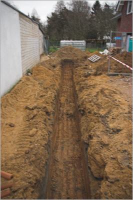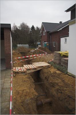 Ab Freitag arbeiten die Tiefbauer auch im öffentlichen Bereich, so dass am Montag das örtliche Versorgungsunternehmen die Hausanschlüsse legen kann.