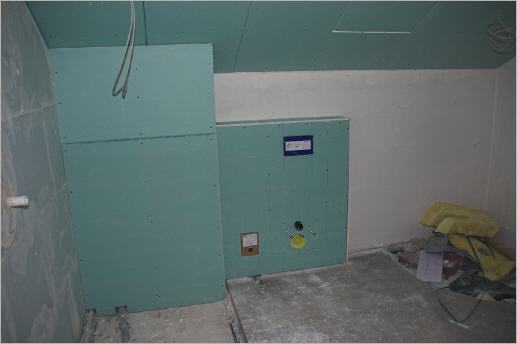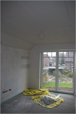 Noch einen Tag vor Weihnachten wird fleißig am Innenausbau gearbeitet. Die Decken sind soweit fertig (verputzt werden müssen sie noch), im Moment gehen die Arbeiten an den Abmauerungen im Badezimmer weiter.