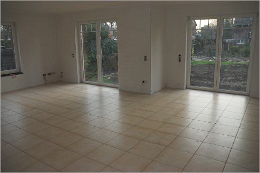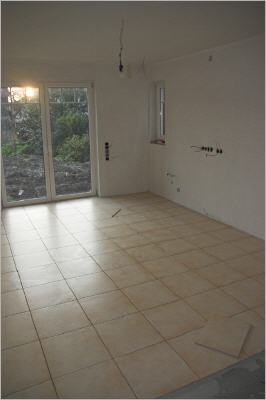 Nachdem der Bau nun einige Zeit beheizt wurde, hat seit sich seit zwei Arbeitstagen der Fliesenleger ans Werk gemacht. Mit der Arbeit und vor allem auch den ausgesuchten Fliesen sind wir sehr zufrieden. Einige Kleinigkeiten müssen allerdings doch korrigiert werden, da wir uns das ein oder andere doch anders vorgestellt haben. Die Haustür ist ebenfalls eingesetzt worden. Noch hat man auf die Glaseinsätze verzichtet und statt dessen Holzfüllungen eingesetzt. Aber zumindest kann nun niemand mehr die wackelige Bautür umpusten... ;-) Die Badewannen und Duschtassen sind ebenfalls angekommen und werden demnächst mit Trockenbau und Fliesen umbaut. Wir sind gespannt, wie es dann aussieht. Die Eckbadewanne und die riesige Duschtasse machen allerdings schonmal eine gute Figur. Die Elektroinstallation wird derzeit auch komplettiert. Die letzten Steckdosen wurden gesetzt und die Glühbirnen montiert. Alles in Allem geht es also gut voran.