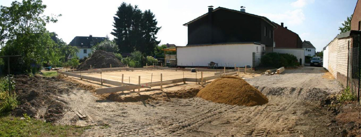 Auch wurden die Fundamentstützen verlegt. So bekommt man schon einen sehr guten Eindruck von der Größe des Hauses. Die Arbeiter beneiden wir heute nicht: mit fast 40°C erleben wir den heißesten Tag des Jahres.