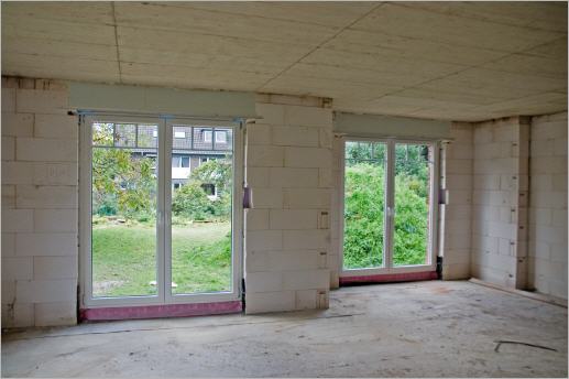 Heute wurden auch die Fenster und eine Bautüre eingebaut. Jetzt kann es also mit dem Innenausbau zügig voran gehen. Am kommenden Samstag beginnt der Elektriker seine Arbeiten.