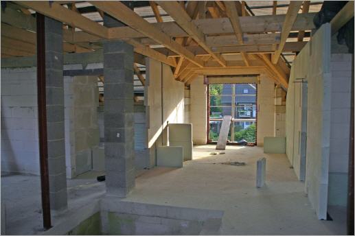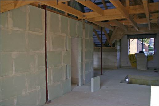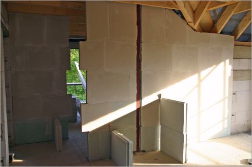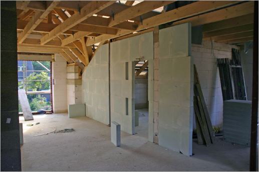 Endlich tut sich mal wieder etwas auf der Baustelle: gestern wurden die Zwischenwände geliefert, heute wurde mit der Montage begonnen. Zunächst im OG zwischen Kinderzimmer, Arbeitszimmer und Bad.