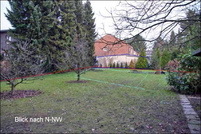 Wir übernahmen das Grundstück als erschlossenes Baugrundstück, allerdings wurde es bisher als Garten genutzt. Als Problem erwiesen sich die zahlreichen, teils 20m hohen Fichten, die direkt oder indirekt den Bau behinderten.
