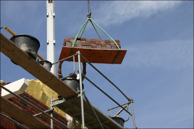Am diesem Samstag war richtig viel los auf unserer Baustelle! Die Rohbauer hat der Ehrgeiz gepackt (oder der enge Terminplan... *g*) und man hat den sonnigen Tag genutzt, um noch einen der Giebel fertig zu verklinkern. Wir konnten das Geschehen diesmal persönlich einige Zeit beobachten. |